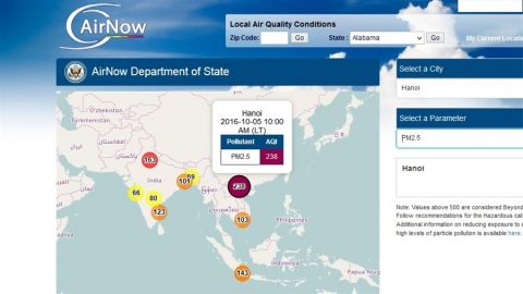 Tình trạng ô nhiễm không khí tại Hà Nội trên trang web của Bộ Ngoại giao Mỹ vào 10h sáng 5/10