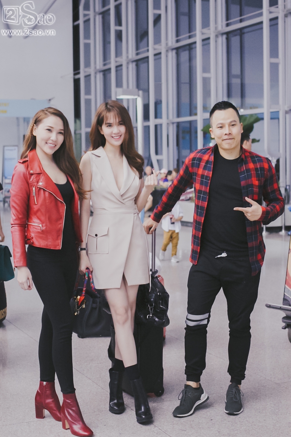 Có thể nói Ngọc Trinh luôn là tâm điểm ở những nơi cô đến, không cần phải diện trang phục cầu kì, Ngọc Trinh vẫn nổi trội giữa đám đông bởi chiều cao và gương mặt đẹp cùng làn da trắng ngần. Song hành cùng Ngọc Trinh trong chuyến đi này là “ông trùm chân dài” Khắc Tiệp và người mẫu Quỳnh Thư.