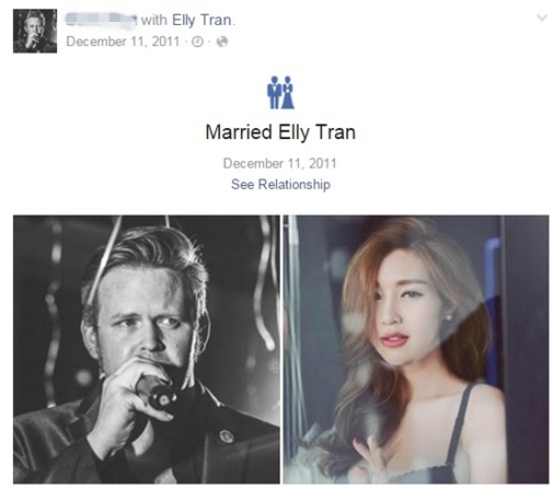 "Chồng tin đồn" của Elly Trần cũng không ngại để công khai trạng thái "đã kết hôn" với Elly Trần.