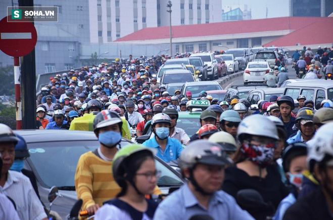 Dòng phương tiện lưu thông kẹt cứng trên cầu.