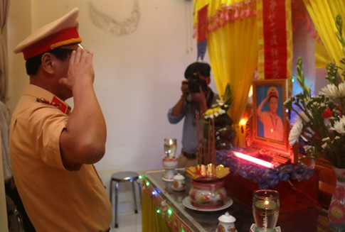Trước di ảnh Dũng trong bộ cảnh phục của ngành đang giơ tay chào, nhiều cán bộ đã lần lượt thắp hương mà không kìm được sự xúc động.
