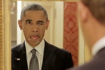 Tổng thống Obama và người dẫn chương trình Stephen Colbert trong một cuộc phỏng vấn xin việc giả định dành cho Obama. Ảnh: The Late Show Of Stephen Colbert.