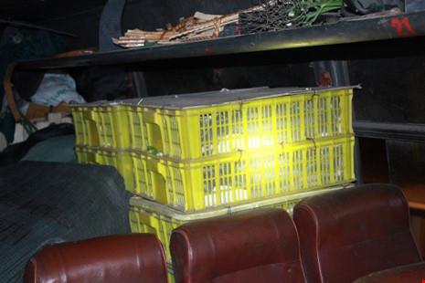 Tổ công tác phát hiện các băng ghế trong khoang chở hành khách chất chật kín hàng hóa. Trong đó, có 15 thùng nhựa bên trong chứa 120 con rắn hổ mang, tổng trọng lượng 220kg. Tài xế khai, chở thuê số rắn trên với giá 300 ngàn đồng/100kg . Ngoài ra, trên xe có 4 hành khách, tuy nhiên tài xế khai là người nhà.
