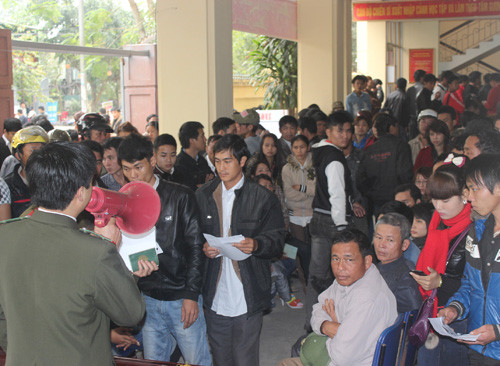 Thảo nào, trước khi vào đây, một nhóm thanh niên cả nam lẫn nữa đứng dàn hàng ngang chẹt cứng lối vào cơ quan với những lời mời đại loại như: "Anh vào đây làm thì thủ tục sẽ nhanh gọn, không phải chen lấn, xếp hàng, bên em sẽ có người vào nộp cho anh”.