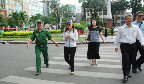 Ở khắp các tuyến đường khu vực trung tâm những ngày gần cuối năm, không khó để phát hiện những thanh niên xung phong (TNXP) rảo bước, luôn tay hướng dẫn và đưa du khách sang đường. Trong mắt du khách quốc tế, họ như là những người bạn tin cậy có thể giải đáp mọi thắc mắc, chỉ dẫn tận tình về TP.HCM.