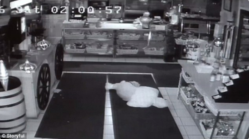 Sau đó, tên này đi tiểu luôn vào thùng rác trong nhà hàng rồi ngủ thiếp đi giữa sàn bếp. Cảnh sát cho biết tên trộm này tỉnh dậy và bỏ đi vào sáng trước khi chủ nhà hàng có mặt. Tại hiện trường, tên trộm kỳ quặc này bỏ quên bằng lái xe và chiếc đồng hồ. Chủ nhà hàng cho biết có lẽ tên trộm này quá đói và say xỉn nên không làm chủ được hành vi.