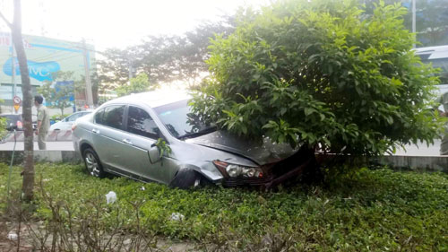 Ô tô “điên” chỉ dừng lại khi leo lên lề đường