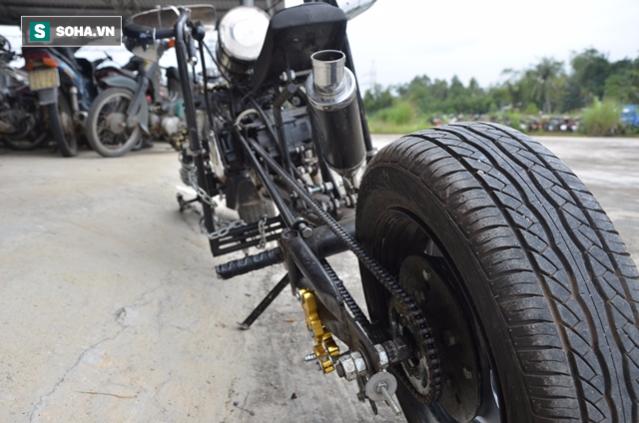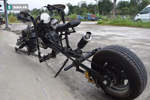 Phần khung xe được cuốn thêm dây xích sắt và ghi đông lắp hai chiếc dè giống đôi cánh dơi.