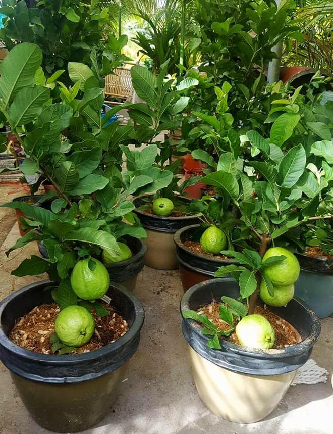 Loại cây anh Cường bán chạy nhất dịp Tết này là ổi “lê ngọt” do anh nghiên cứu. Giống ổi này sẽ cho trái sau 2 – 4 tháng trồng và đặc tính vượt trội là ra trái quanh năm, trái to từ 2 – 3 trái/kg. Về lý do đặt tên giống ổi này là “lê ngọt”, anh Cường giải thích bởi nhìn bề ngoài loại ổi này giống trái lê, còn ăn vào có vị ngọt thanh. Giá bán cũng khá “mềm”, từ 100 – 150 ngàn đồng/chậu.