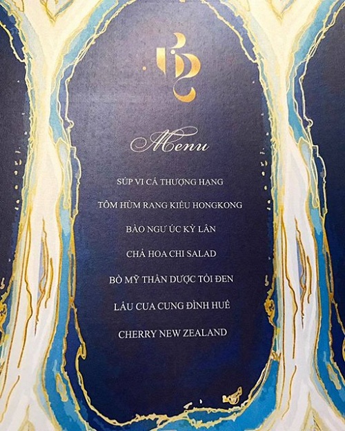 Menu đãi tiệc xa hoa với súp vi cá, bào ngư, tôm hùm, bò mỹ... Hơn 1.000 con tôm hùm nặng 800 gram được dùng để thiết đãi hơn 1.000 khách mời.