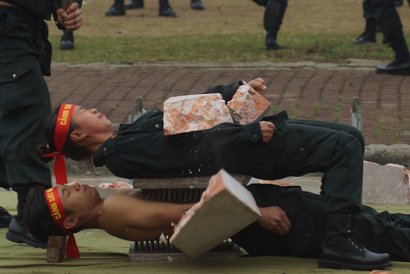 PV ghi lại một số hình ảnh về các màn biểu diễn nội công siêu đẳng của Cảnh sát đặc nhiệm Việt Nam.