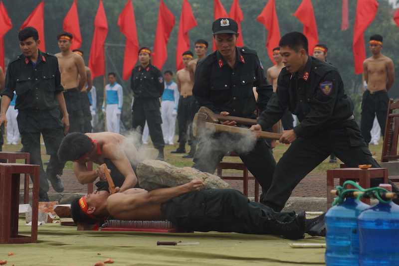 Tại lễ kỷ niệm 20 năm ngày thành lập Tiểu đoàn Cảnh sát đặc nhiệm số 1 (Bộ Tư lệnh Cảnh sát Cơ động, Bộ Công an), nam nữ cán bộ, chiến sĩ Cảnh sát đặc nhiệm đã có những màn trình diễn nội công siêu đẳng.