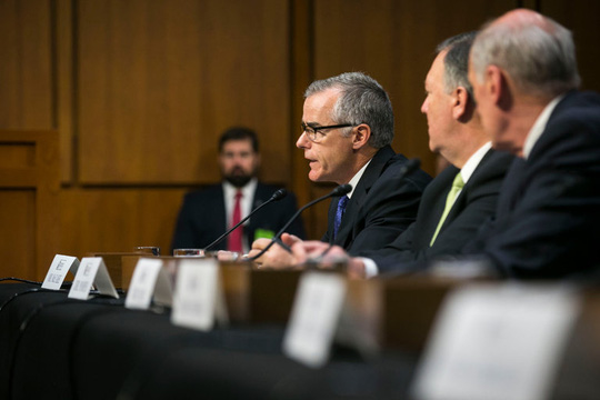 Quyền giám đốc FBI Andrew McCabe trong cuộc điều trần của Ủy ban Tình báo Thượng viện. Ảnh: New York Times