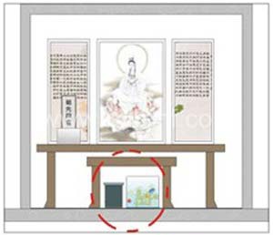 Phía dưới bàn thờ nên giữ sạch sẽ, không nên chất đống đồ đạc ở dưới. Đặc biệt chú ý không đươc để đồ điện hoặc bể cá cảnh sẽ có hiện tượng tinh thần sa sút hoặc tài sản bị hao hụt. Nếu như có đặt đồ phía dưới thì chỉ nên đặt một chiếc la bàn.