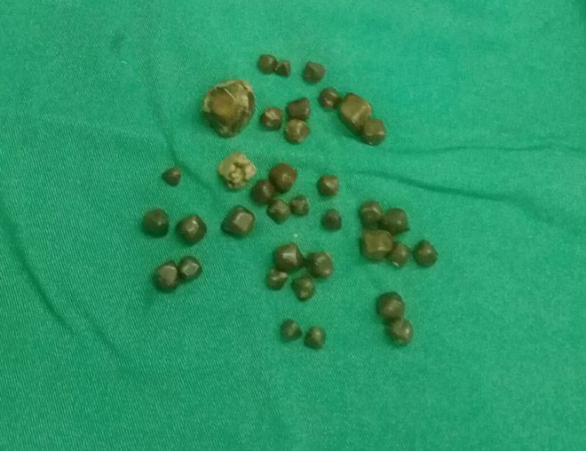 Ngay khi bệnh nhân được đưa vào phòng mổ, các BS đã thực hiện phẫu thuật nội soi cắt bỏ hoàn toàn túi mật đã bị viêm và sưng to. Ca phẫu thuật diễn ra thành công, lấy được 35 viên sỏi trong túi mật, bệnh nhân qua cơn nguy hiểm. Điều đặc biệt là trong quá trình mổ, gần như không thấy dịch mật vì đã bị hàng chục viên sỏi lớn nhỏ lấp đầy cả túi mật.