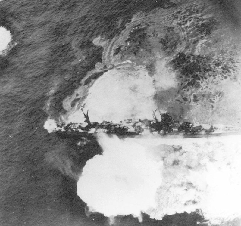 Đợt tấn công đầu tiên kết thúc với việc Yamato bị trúng hai quả bom, một ngư lôi và mất hai tàu khu trục hộ tống. Đợt tấn công thứ hai diễn ra ngay sau đó với lực lượng khoảng 100 máy bay Mỹ.
