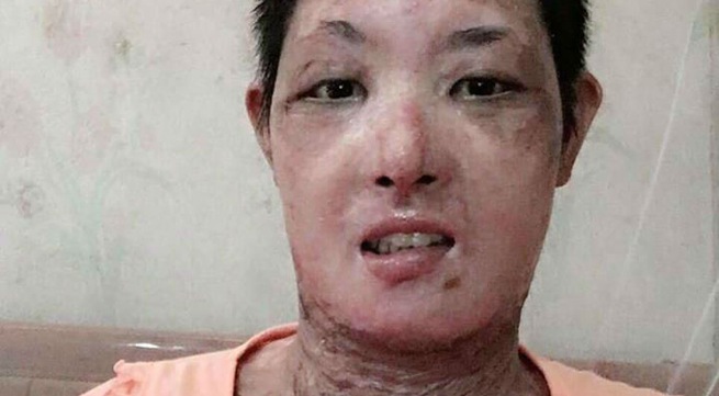 Do mâu thuẫn, chị bị chính người chồng của mình nhốt trong nhà, tẩm xăng thiêu sống cả hai. 5 ngày sau cơn cuồng điên ấy, chồng chị tử vong. Còn chị tiếp tục nằm viện điều trị những vết bỏng trên cổ, thân thể, hai cánh tay chằng chịt vết sẹo. Đau thương hơn, khuôn mặt khả ái của chị bị biến đổi hoàn toàn.