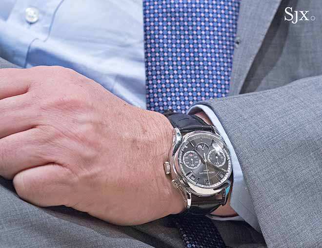 Mẫu đồng hồ 5208p đắt giá nhất của Patek Phippe trên tay một người sở hữu.