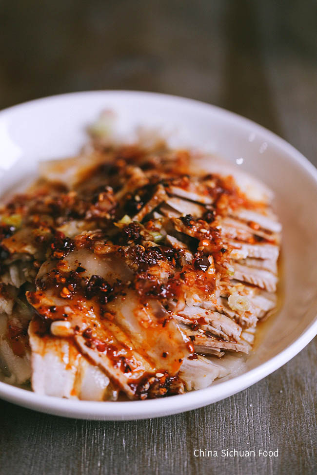 - Rưới sốt tỏi lên trên thịt heo, ngâm trong 30 giây cho thịt heo ngấm rồi đổ tiếp sốt ớt lên trên.