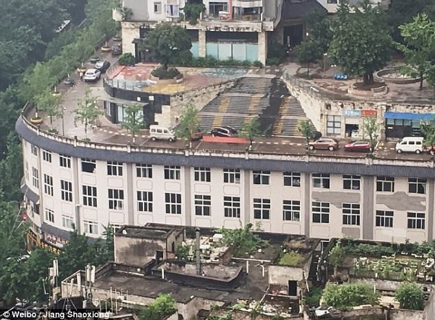 Một con đường ô tô được xây trên nóc nhà ở Trung Quốc. Nóc tòa nhà chung cư trở thành đường phố đông đúc. Trên tòa chung cư ở Trùng Khánh còn có cả cây xanh và nhiều thiết bị đặc biệt.