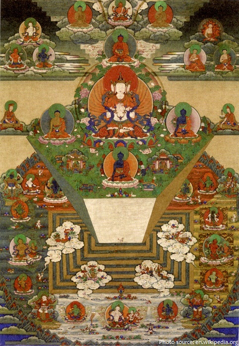 [2] Núi Tu-di là một ngọn núi thiêng với năm đỉnh, được đề cập trong vũ trụ học của Ấn Độ giáo, Kỳ-na giáo và Phật giáo; và được xem như là trung tâm của tất cả các vũ trụ thuộc vật lý, siêu hình và tinh thần, với nhiều tài liệu cổ nói rằng, “Mặt Trời cùng với các hành tinh bay vòng quanh ngọn núi.”