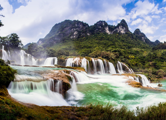 Thác Bản Giốc nằm ở huyện Trùng Khánh, cách thành phố Cao Bằng khoảng 90 km và cách Hà Nội gần 400 km. Đây là một trong những ngọn thác nổi tiếng nhất Việt Nam. Ảnh: Phuong Thao.