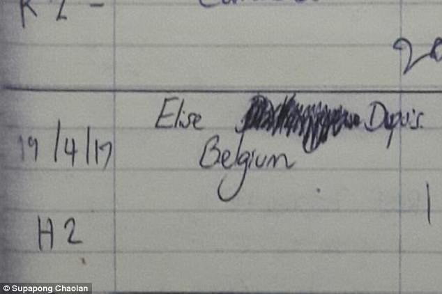 Phía cảnh sát Thái Lan cho rằng, đây chính là hình ảnh cuối cùng của nữ du khách người Bỉ Elise Dallemagne, người được phát hiện treo cổ tự tử trong rừng và bị thằn lằn ăn mất nửa người. Hình ảnh này được cho là xuất hiện 7 ngày trước khi xác nạn nhân được tìm thấy vào ngày 28.4.