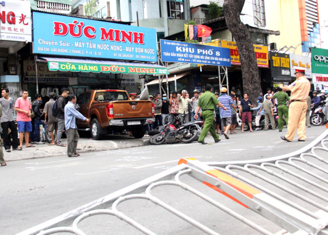 Nhận tin báo, lực lượng chức năng quận 10 đã có mặt điều tra xử lý tai nạn, điều tiết giao thông qua khu vực.