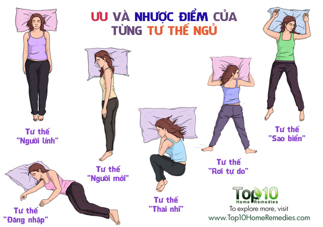 Nhược điểm: Mặc dù vị trí này có thể giúp bạn cảm thấy khá thoải mái trong khi ngủ nhưng nó có thể gây ra nhiều căng thẳng trên cổ và lưng, dẫn đến chứng đau nghiêm trọng ở cổ và lưng, chẳng hạn như đau thần kinh hông.