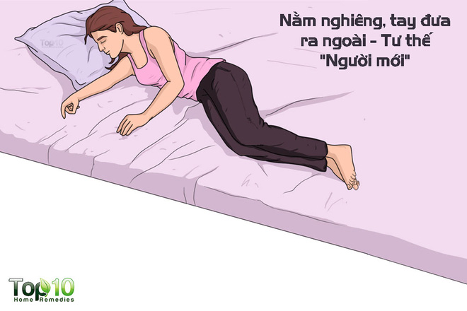 4. Nằm nghiêng, tay đưa ra ngoài - Tư thế "Người mới"