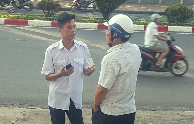 Lúc này, tài xế taxi lái xe chạy lên phía trước cách nơi va chạm khoảng 200 mét thì dừng lại. Tại đây, tài xế taxi lôi trong xe ra một thanh sắt quay lại đánh nhau với tài xế xe máy nhưng bị người này đánh trả.