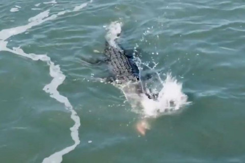 Hai người bạn trên thuyền đã tình cờ ghi được khoảnh khắc hiếm gặp khi một con cá sấu vô cùng khôn ranh trong lúc săn mồi.