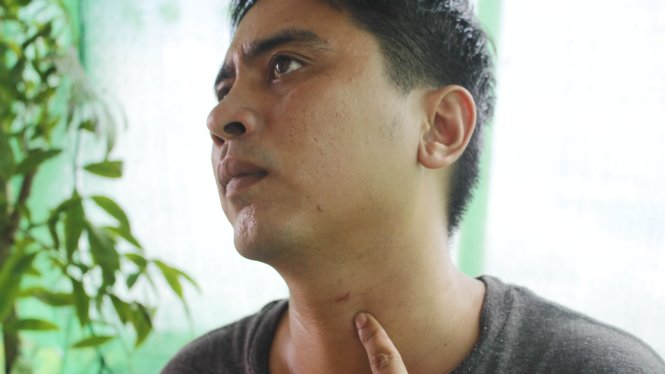 Tại đây, tôi bị ông Giang - trưởng công an xã dùng tay bẻ cổ 2 lần. Sau đó người này còn đá vào xương sườn, chân và ép tôi viết bản tường trình là có hành vi lăng mạ công an.