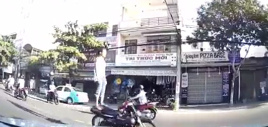Trước đó, ngày 4-8, một người dân đã đăng lên Facebook cá nhân và các trang mạng một đoạn clip dài gần một phút được ghi lại bằng camera hành trình trong đó có hình ảnh một thanh niên đứng trên yên và cho xe máy phóng khá nhanh trên đường phố có đông đúc xe cộ qua lại. Nam thanh niên này không đội nón bảo hiểm, thả hai tay và người đứng thẳng trên yên xe.Người đăng clip cũng thông tin sự việc trên diễn ra ở đường Nguyễn Văn Thoại, quận Sơn Trà, TP Đà Nẵng.