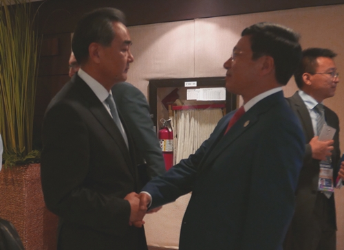 Ngoại trưởng Trung Quốc Vương Nghị bắt tay với Phó thủ tướng, Bộ trưởng Ngoại giao Phạm Bình Minh