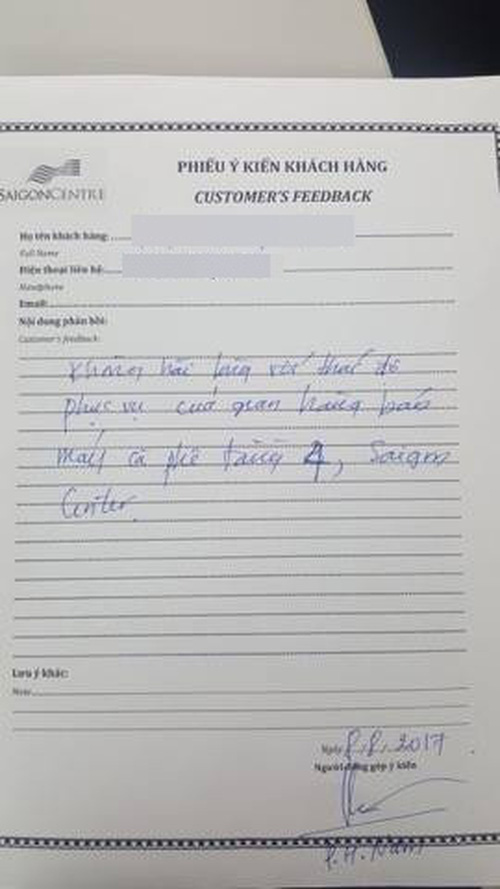 Theo chia sẻ từ người đăng tải, sự việc xảy ra cách đây 2 ngày, vào lúc 8h tối tại cửa hàng của mình ở tầng 4 tòa nhà Saigon Center, quận 1, Sài Gòn.