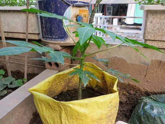 Đu đủ Thái hay còn gọi đu đủ cao sản có thể trồng vào chậu, thùng xốp đều phát triển rất tốt. Trước hết bạn nên ươm giống vào đất đã trộn phân bò hoai mục, phân gà, phân trùn quế, vỏ trấu, xơ dừa, than bùn, mùn hữu cơ (có thể mua đất bán sẵn).