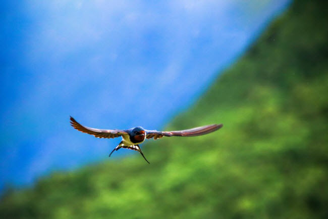 Chim mẹ bay đi kiếm mồi cho đàn con giữa thiên nhiên hùng vĩ ở Na Uy.