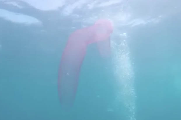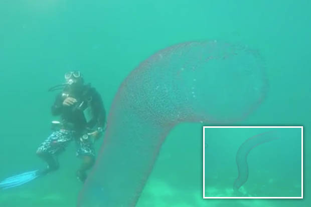 Theo Daily Star, đoạn video đăng tải trên mạng internet cho thấy sinh vật biển giống như “quái vật ngoài hành tinh” bơi xung quanh nhóm thợ lặn.
