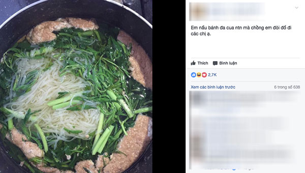 Một phụ nữ có gia đình bất ngờ chia sẻ câu chuyện bếp núc. Cô cho hay, đã mất rất nhiều công sức nấu bánh đa cua cho chồng nhưng lại bị bắt đổ đi. Nhiều chị em đã vào thảo luận, tranh cãi về bát bánh đa cua của cô vợ.