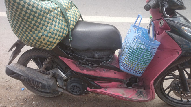 Thấy vậy, chị D. hoảng sợ kêu cứu và được nhiều người chạy xe ngang dừng lại phụ dập đám cháy trên xe. Khi ngọn lửa tắt thì hai bên cốp cháy đã loang lổ, rất may chưa nổ bình xăng. Sau đó, hai vợ chồng làm lành và anh S. nổ máy xe tiếp tục chở vợ về TP.HCM.