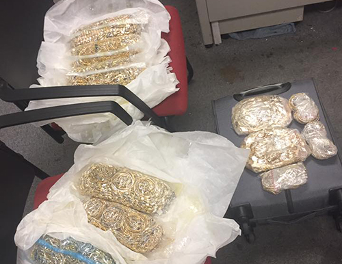 Số vàng trang sức được quấn quanh người năm hành khách. Ảnh: Tùng Sơn