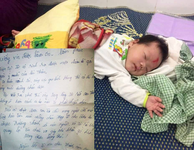 Người mẹ nhờ tấm lòng hảo tâm nuôi dưỡng con thay mình cho đến khi cháu trưởng thành và nên người. “Tôi sẽ không quay lại tìm cháu và gây khó khăn gì hết. Mong được lượng thứ! Ngàn lời tôi xin chân thành cảm ơn”, người mẹ viết.