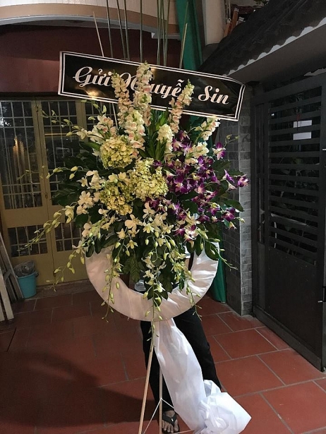 Anh Nguyễn Việt Sin cho biết, tối cùng ngày, anh Sin đi công việc ở bên ngoài thì nhận được điện thoại của người thân báo có người mang vòng hoa để trước nhà. Anh Sin chạy xe về nhà thì phát hiện vụ việc.
