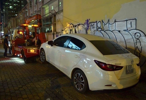 Một ôtô không tài xế bị cẩu đi. Ảnh: Duy Trần.