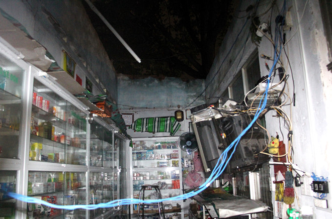 “Mưa gió lớn lắm. Hai nhân viên trong tiệm đang bán thuốc thì sập cái ầm. May mắn là người không bị thương, tài sản hư hại thì chưa ước tính được”, ông Châu, chủ tiệm thuốc Tây chia sẻ.