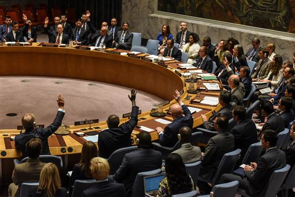 Biểu quyết nghị quyết trừng phạt Triều Tiên ngày 11.9 tại Hội đồng Bảo an Liên Hợp Quốc ở New York. Ảnh Reuters