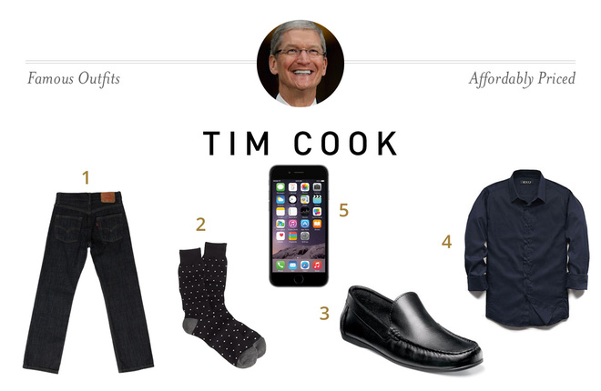 Giám đốc điều hành kế nhiệm Steve Jobs, Tim Cook cũng là một người được biết đến với phong cách ăn mặc "một màu": quần bò kết hợp cùng áo sơ mi, dù màu sắc có thay đổi nhưng kiểu dáng thì hoàn toàn giữ nguyên. Tuy nhiên, khác với Jobs, phong cách thời trang của Cook bắt nguồn từ tư tưởng và quan điểm sống của ông.