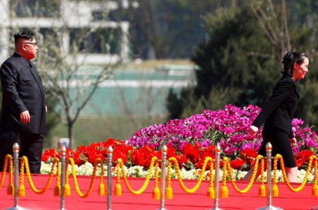 Nhà lãnh đạo Triều Tiên Kim Jong-un và em gái trong một sự kiện vào tháng 4/2017. Ảnh: Reuters