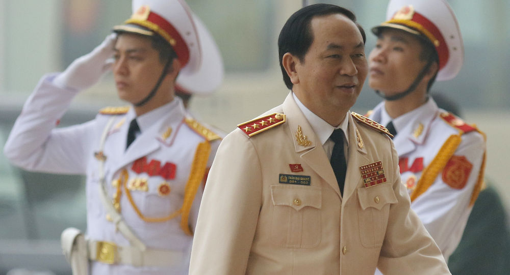 Chủ tịch nước Trần Đại Quang đã xuất hiện trở lại thường xuyên hơn. Mới đây Chủ tịch nước Trần Đại Quang đã đến thăm, làm việc với Bộ Quốc phòng tại Trung tâm Huấn luyện Miếu Môn, Hà Nội. Dưới đây là hình ảnh Chủ tịch Quang trong bộ quân phục.